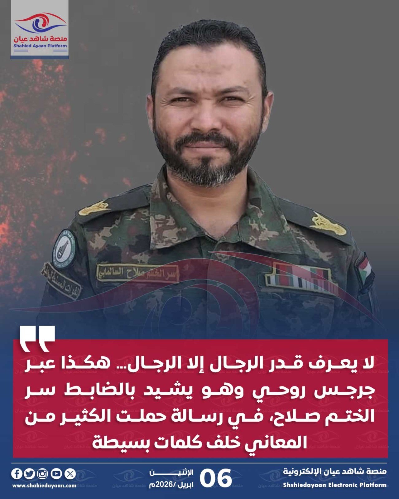 لا يعرف قدر الرجال إلا الرجال… هكذا عبر جرجس روحي وهو يشيد بالضابط سر الختم صلاح السالمابي، في رسالة حملت…