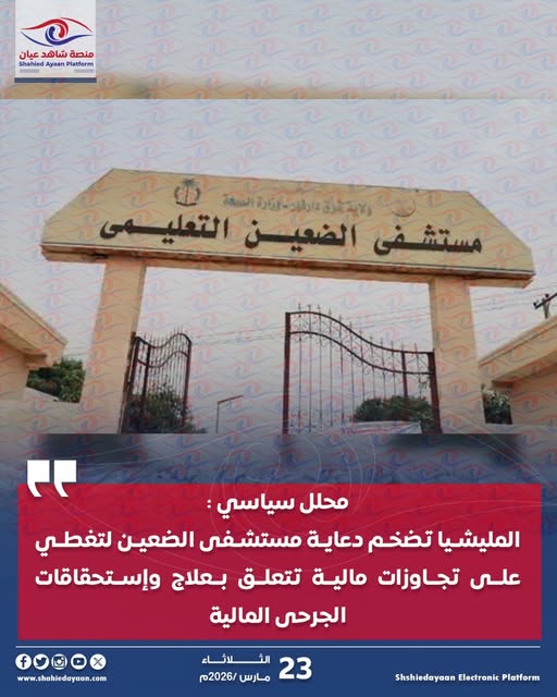 محلل سياسي لمنصة شاهد عيان : المليشيا تضخم دعاية مستشفى الضعين لتغطي على تجاوزات مالية تتعلق بعلاج وإستحقاقات الجرحى المالية…