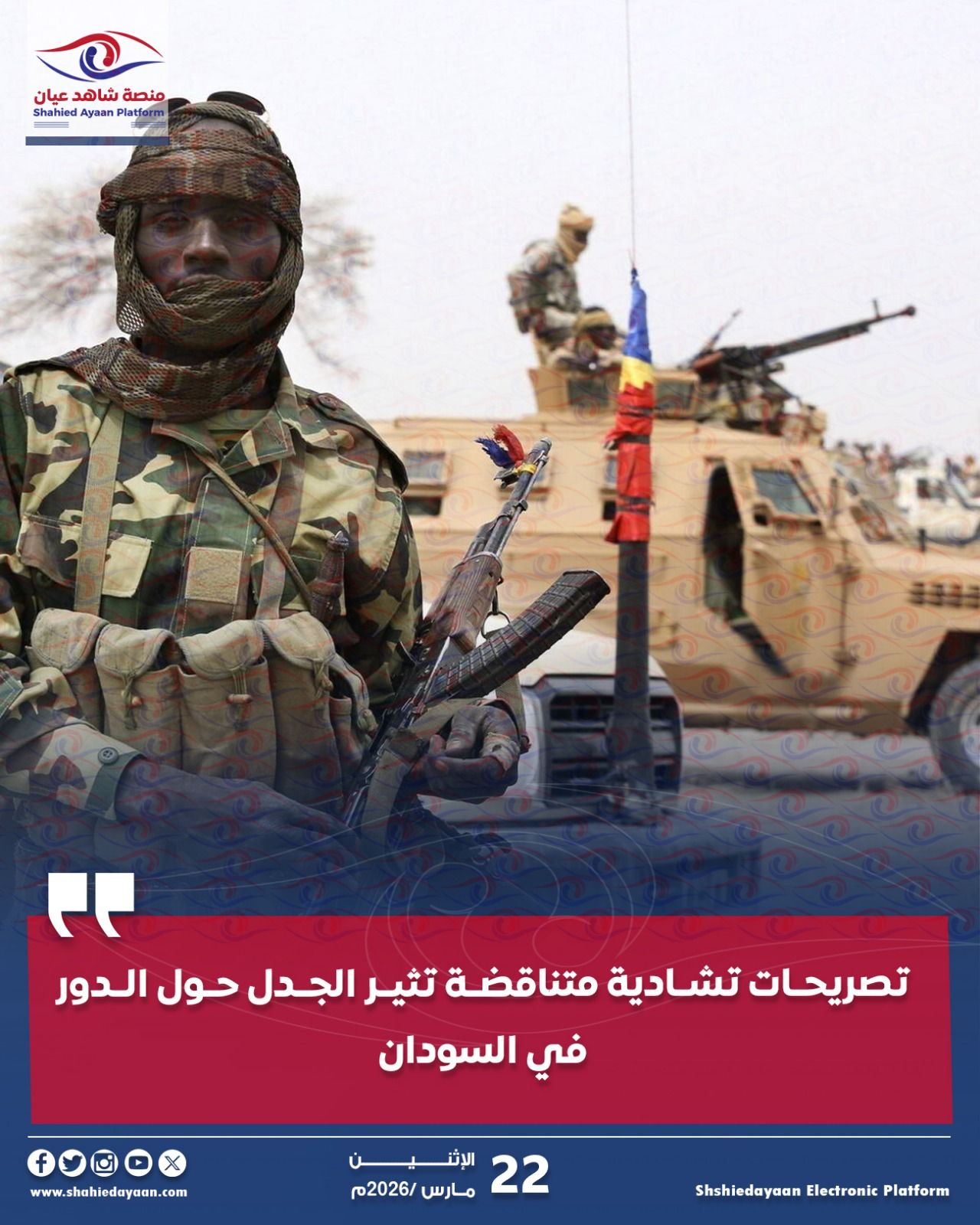 قال خبير عسكري تشادي لمنصة “شاهد عيان” إن الجنرال أبكر عبد الكريم داود وجه رسالة مفادها: “لسنا طرفاً في صراعات…