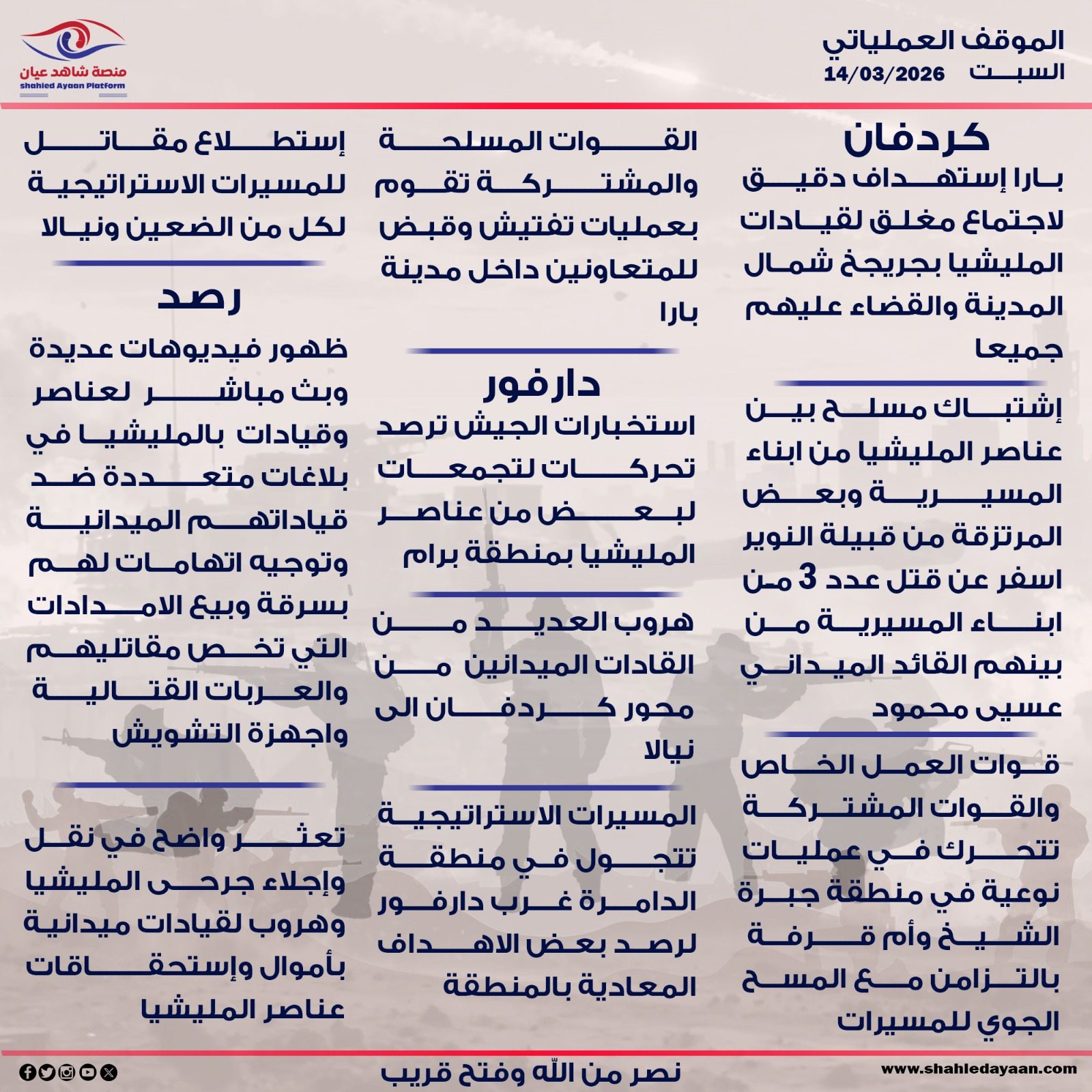 – بارا إستهداف دقيق لاجتماع مغلق لقيادات المليشيا بجريجخ شمال المدينة والقضاء عليهم جميعا. – إشتباك مسلح بين عناصر المليشيا…