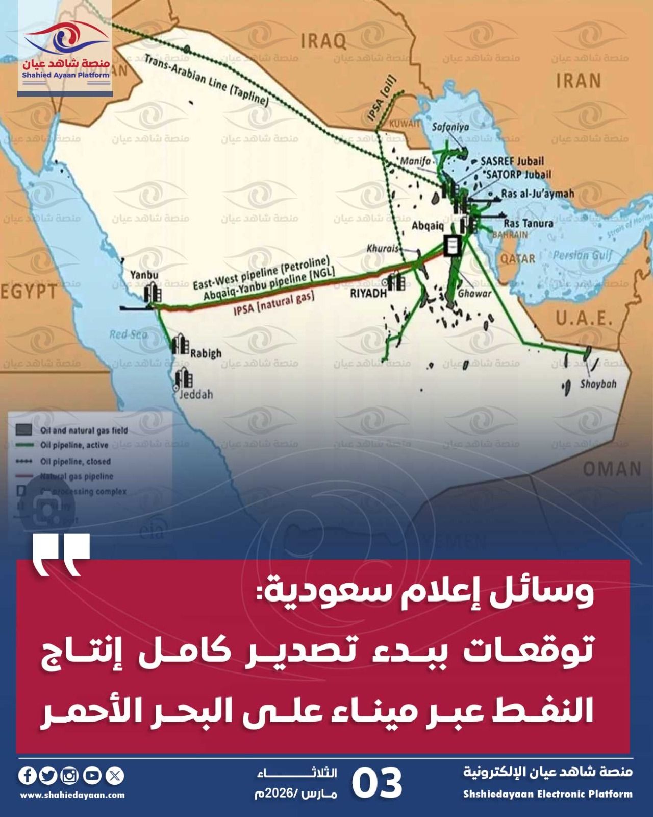أفادت وسائل إعلام سعودية بأن هناك ترتيبات جارية لبدء تصدير كامل إنتاج النفط عبر أحد الموانئ المطلة على البحر الأحمر…