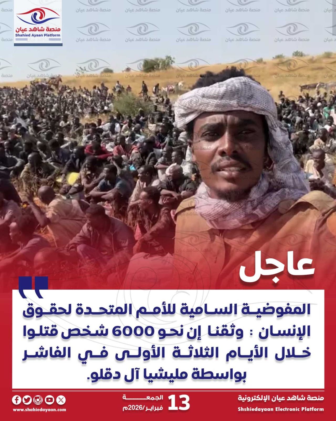 عاجل – شاهد عيان: المفوضية السامية للأمم المتحدة لحقوق الإنسان : وثقنا نحو 6000 شخص قتلوا خلال الأيام الثلاثة الأولى…