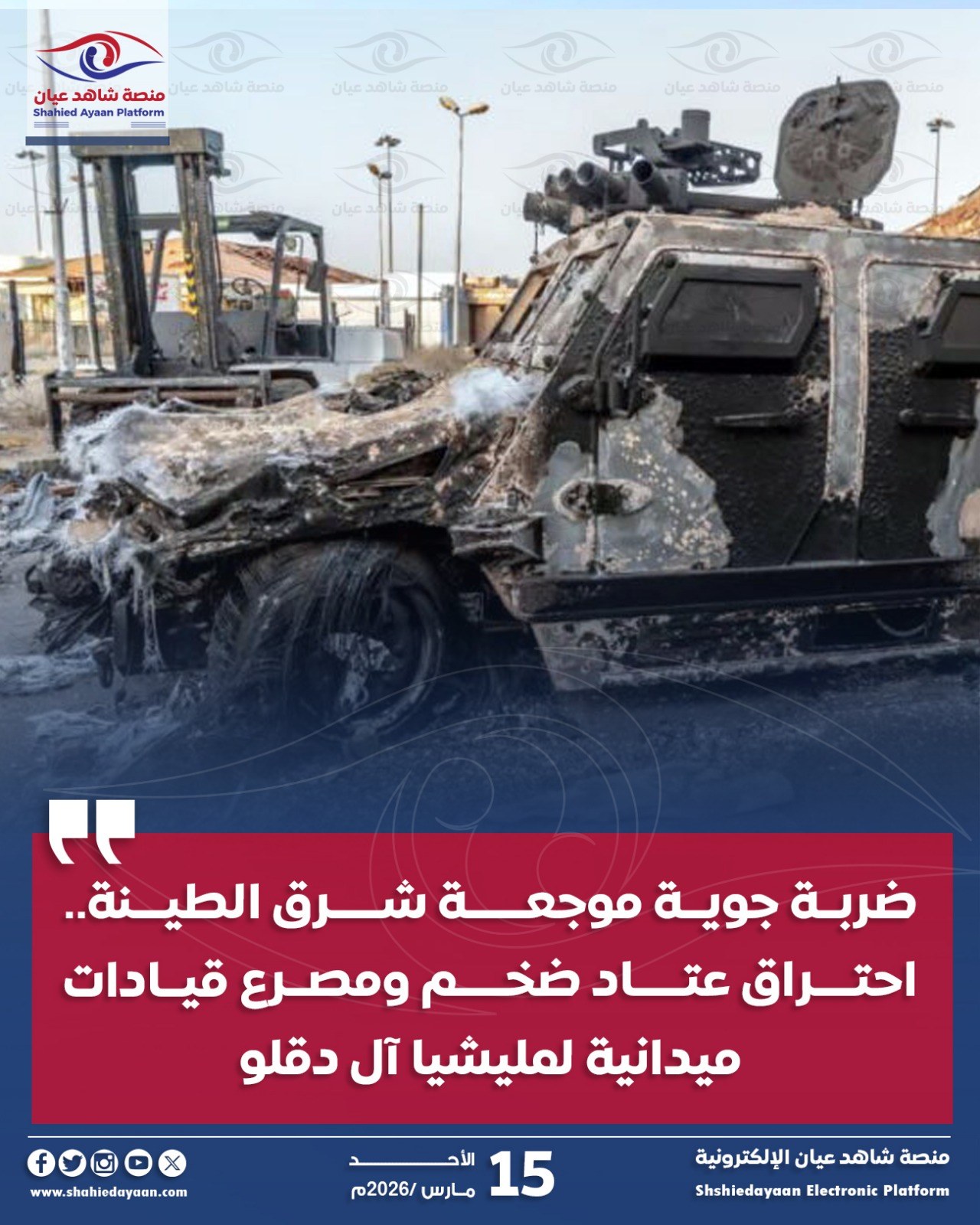 أفادت تقارير ميدانية لمنصة شاهد عيان باحتراق عدد كبير من العربات القتالية التابعة لمليشيا الدعم السريع، عقب قصف جوي استهدف…