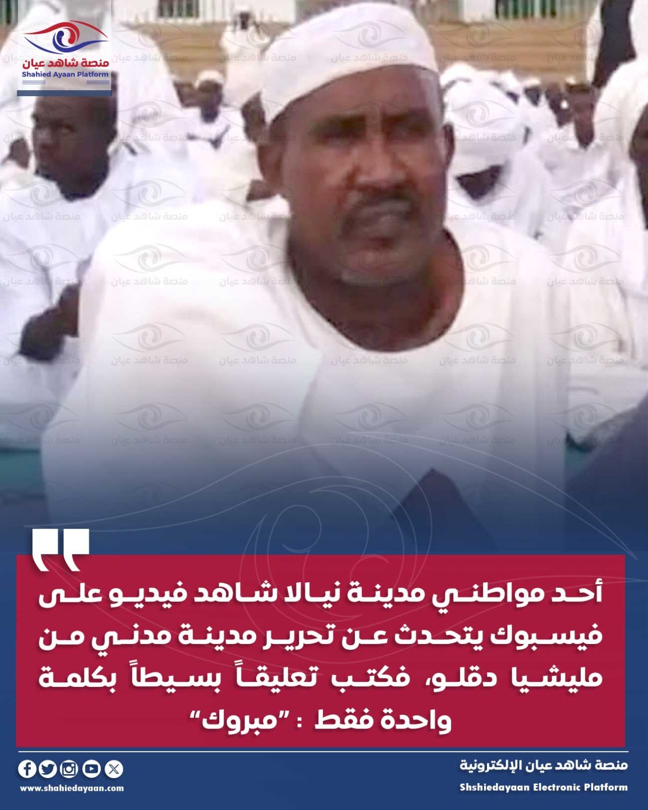 أحد مواطني مدينة نيالا شاهد فيديو على فيسبوك يتحدث عن تحرير مدينة مدني من مليشيا دقلو، فكتب تعليقاً بسيطاً بكلمة…