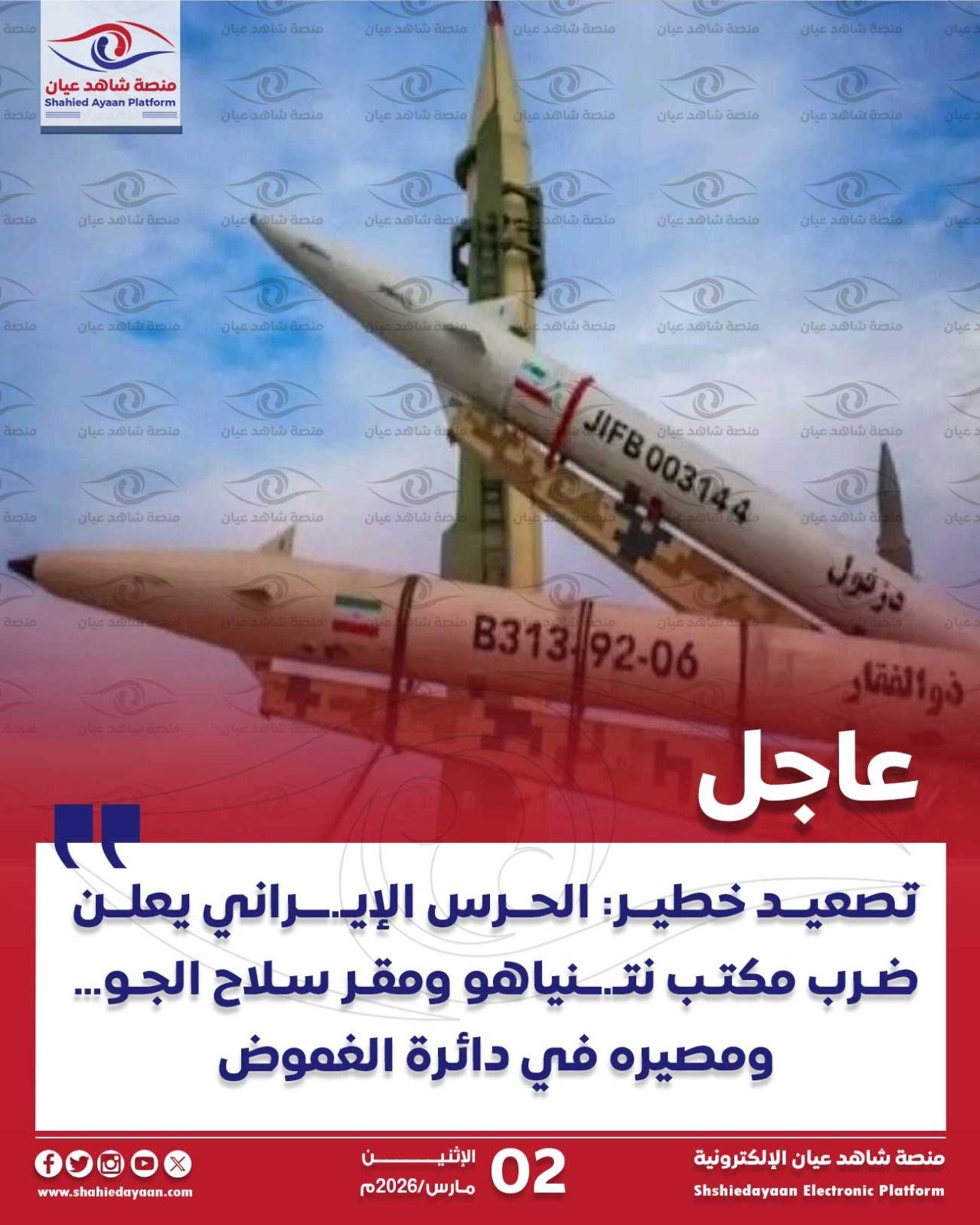 عاجل| تصعيد خطير: الحرس الإيراني يعلن ضرب مكتب نتنياهو ومقر سلاح الجو… ومصيره في دائرة الغموض الحرس الإيراني يعلن استهداف…