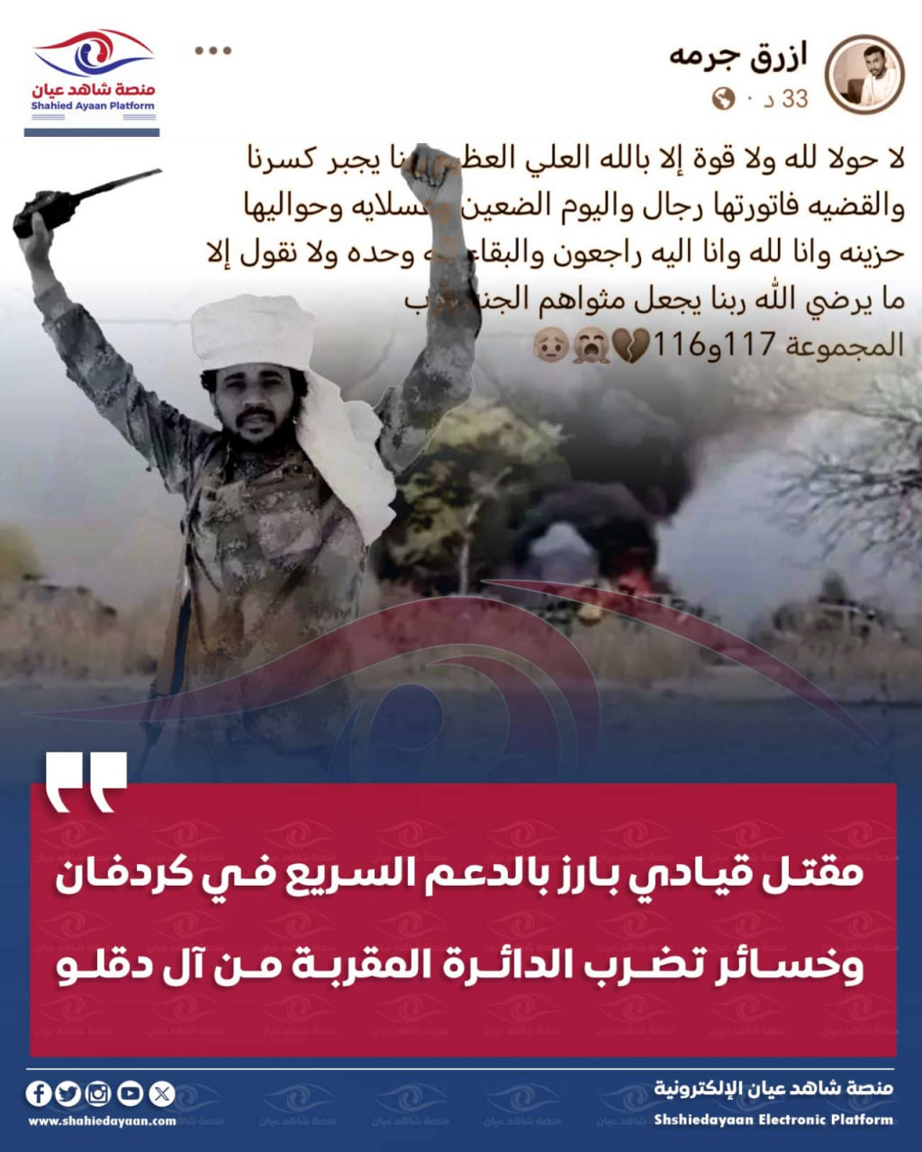 • مقتل قيادي بارز بالدعم السريع في كردفان وخسائر تضرب الدائرة المقربة من آل دقلو