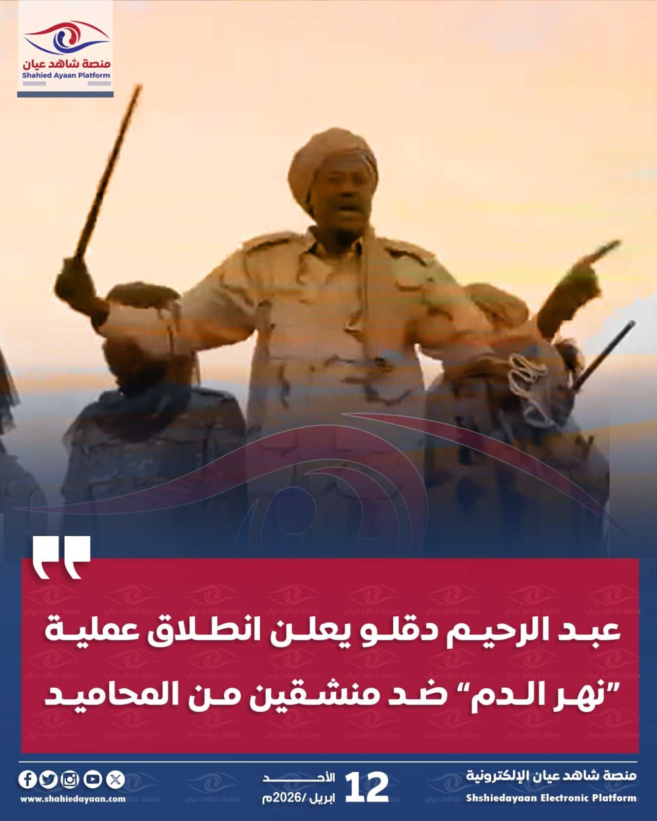 أعلن عبد الرحيم دقلو عن بدء عملية عسكرية باسم “نهر الدم” تستهدف عناصر من قبيلة المحاميد انشقوا عن المليشيا وانضموا…