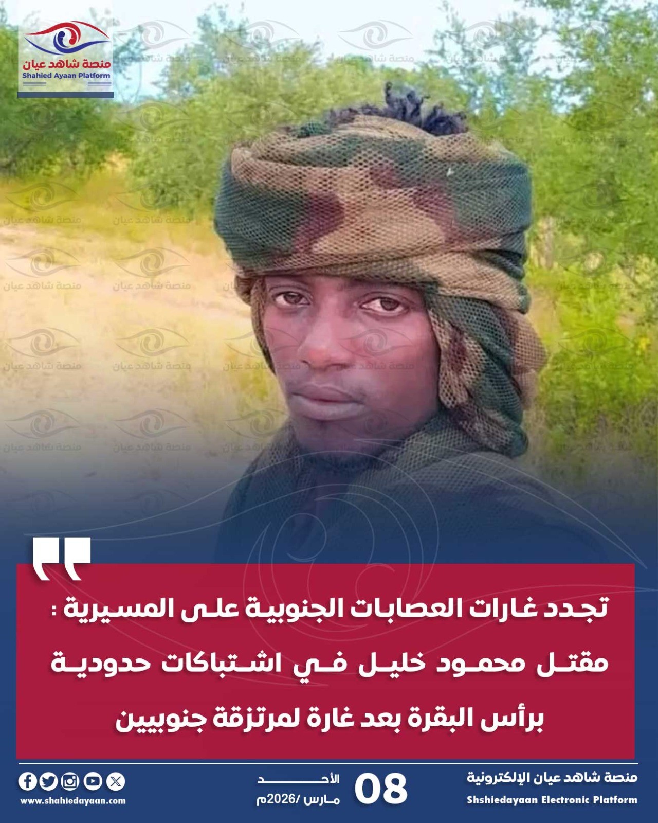 قتل المواطن محمود خليل صباح اليوم الأحد 8 مارس، خلال اشتباكات اندلعت في منطقة رأس البقرة قرن عزاز، إثر هجوم…
