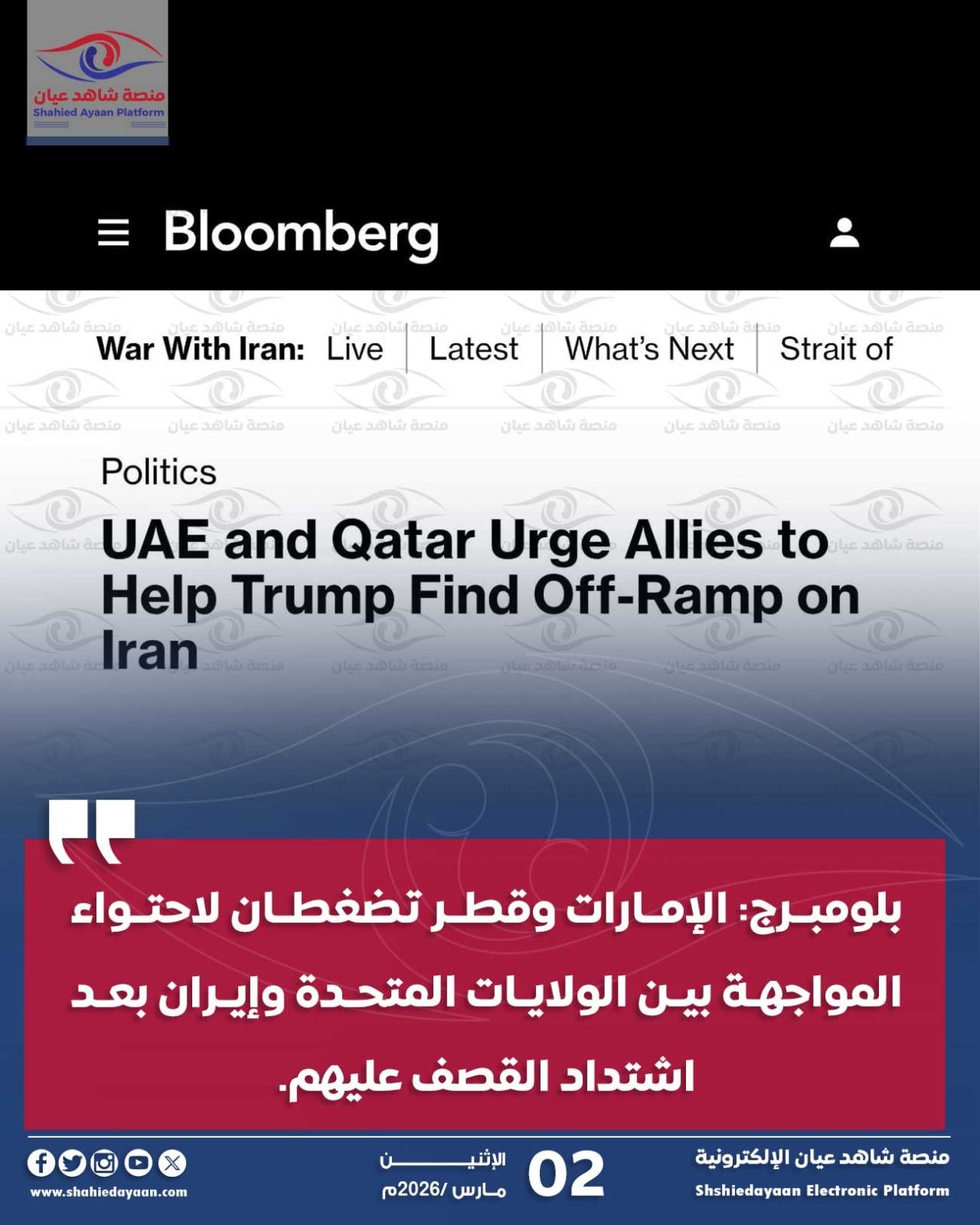 كشفت وكالة بلومبرج الأمريكية أن الإمارات وقطر تمارسان ضغوطاً غير رسمية على حلفائهما الغربيين، في مسعى لإقناع الرئيس الأمريكي دونالد…