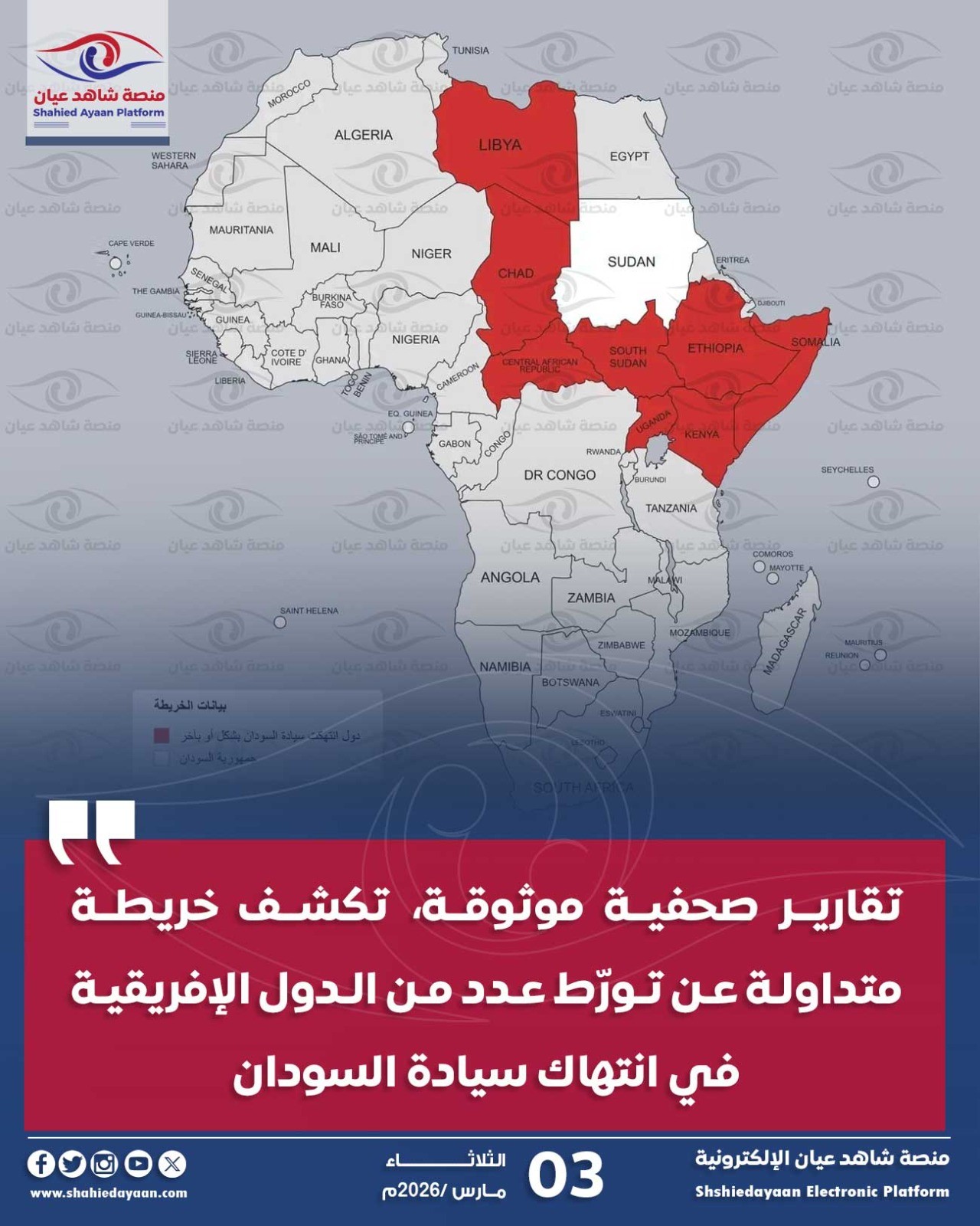 وفق تقارير صحفية موثوقة، تكشف خريطة متداولة عن تورّط عدد من الدول الإفريقية في انتهاك سيادة السودان عبر تقديم أشكال…